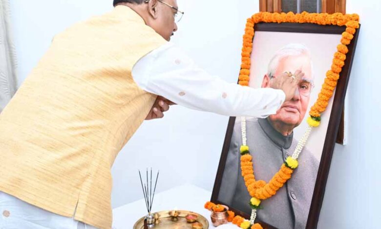 मुख्यमंत्री ने पूर्व प्रधानमंत्री भारत रत्न स्वर्गीय अटल बिहारी वाजपेयी की पुण्यतिथि पर उन्हें नमन किया