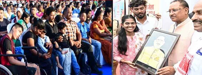 छत्तीसगढ़-रायपुर में ‘दिव्य कला मेला’ में पहुंचे सीएम विष्णुदेव साय, हीरा ने अपने हाथों से बनाई पैरा शिल्प पोर्ट्रेट की भेंट