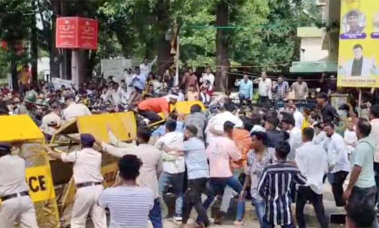 दुर्ग में कांग्रेस के प्रदर्शनकारियों ने तोड़ा बैरिकेड