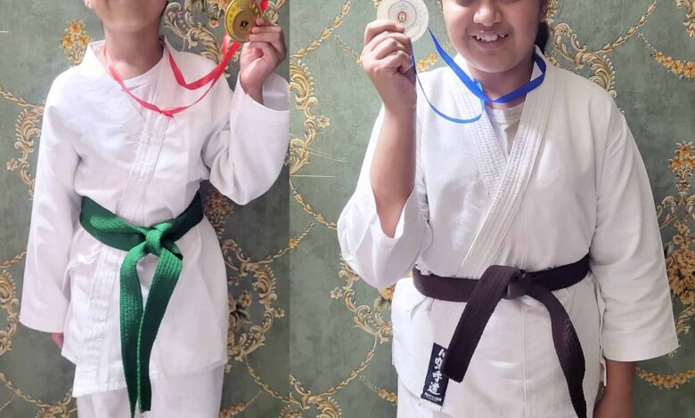 भाई बहन की जोड़ी ने कराटे में फिर लहराया परचम. नौमिशी व विश्व ने जीते गोल्ड व सिल्वर मेडल