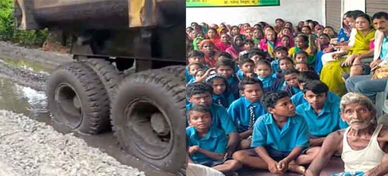 छत्तीसगढ़-रायगढ़ में बदहाल सड़क पर ग्रामीणों ने खोला मोर्चा, स्थानीय विधायक और छात्र धरने पर बैठे