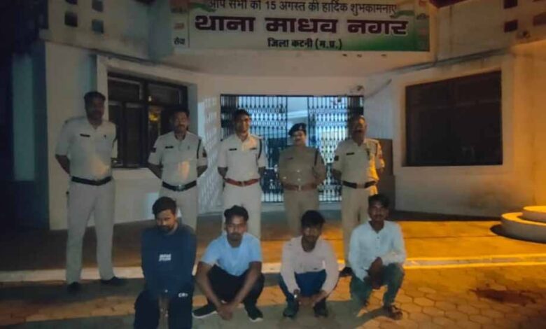 पकड़े गए रामानुज रजक पिता राजेश रजक निवासी नई बस्ती, रवि सोंधया, पिता शंकर लाल सोंधिया, निवासी आधारकाप, कुनाल धूरिया पिता विष्णु धूरिया निवासी शम्भू टाकीज रोड संतनगर, अजय कहार पिता बाबू लाल कहार निवासी बरगवां