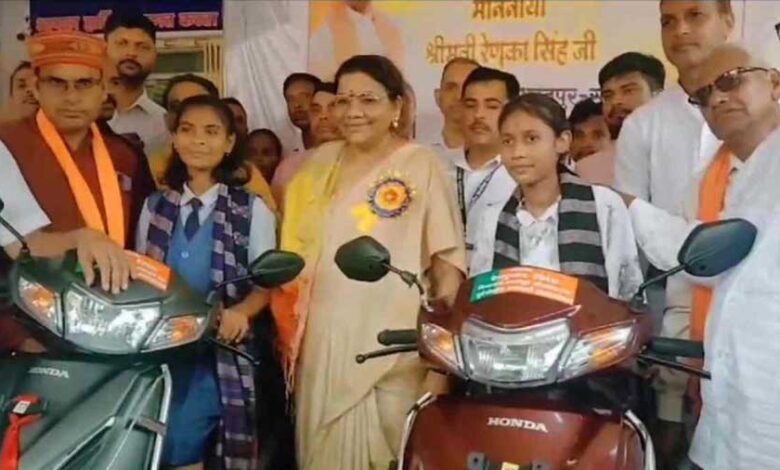 विधायक रेणुका ने दो टॉपर छात्राओं को स्कूटी देकर किया अपना वादा पूरा