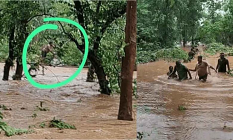 छत्तीसगढ़-कांकेर में बाढ़ में फंसी बोलेरो, नगर पंचायत अध्यक्ष संग अन्य का किया रेस्क्यू