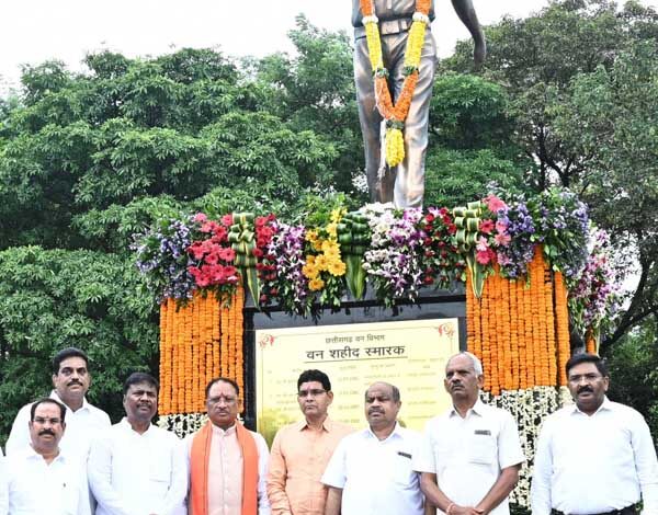 मुख्यमंत्री विष्णु देव साय ने आज राष्ट्रीय वन शहीद दिवस के अवसर पर राजधानी रायपुर स्थित राजीव स्मृति वन पहुंचकर वन शहीदों को श्रद्धांजलि दी। उन्होंने वन शहीदों की स्मृति में वन शहीद स्मारक का अनावरण किया। मुख्यमंत्री साय सहित उपस्थित सभी ने दो मिनट मौन धारण कर वन शहीदों की शहादत को नमन किया।