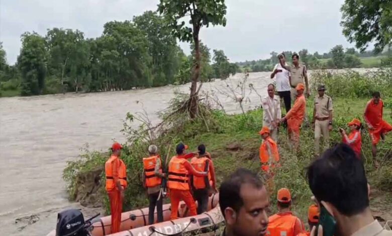 टीकमगढ़ : महोबिया में टापू पर फंसे दो लोग, एनडीआरएफ की टीम ने बचाया