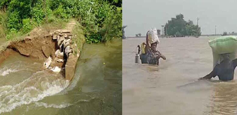 गांव में बाढ़ का पानी फैल चुका है