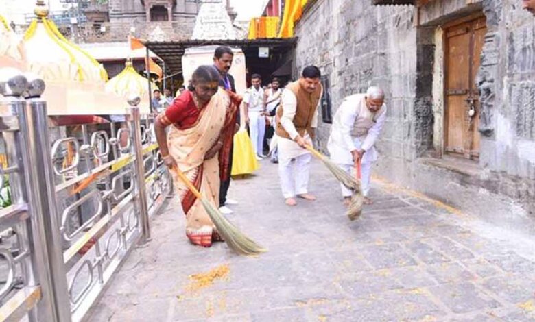 राष्ट्रपति श्रीमती मुर्मु ने श्रीमहाकाल परिसर में स्वच्छता के लिये किया श्रमदान