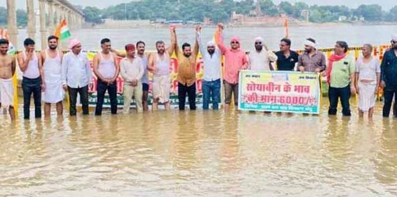 जिले में सोयाबीन का भाव 6 हजार रुपये प्रति क्विंटल करने की मांग लगातार उठाई जा रही, नर्मदा में जल सत्याग्रह