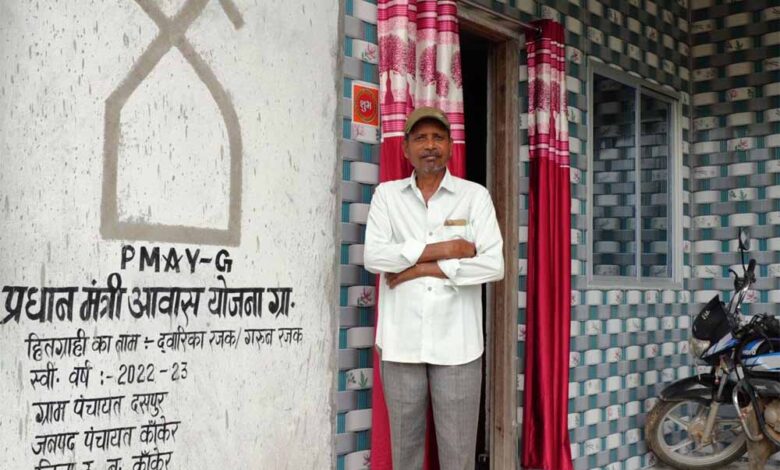 प्रधानमंत्री आवास योजना से गरीब और बेघर परिवारों को सिर पर छत मिल रही है। ऐसे लोगों का सपना साकार हो रहा है जो पक्के घर की सिर्फ कल्पना ही कर सकते थे। जिला मुख्यालय कांकेर से लगे ग्राम दसपुर के श्री द्वारिका रजक इन्हीं में से एक हैं जिन्होंने अपनी मेहनत और प्रधानमंत्री आवास योजना की मदद से अपने परिवार के लिए एक नए मकान का सपना साकार किया है। वे ग्राम सरंगपाल में कपड़ा प्रेस की दुकान चलाते हैं। उसकी पत्नी रोजी-मजदूरी करती है और बेटा राज मिस्त्री का काम करते हुए अपने परिवार के साथ अब पक्के मकान में निवास कर रहा है।