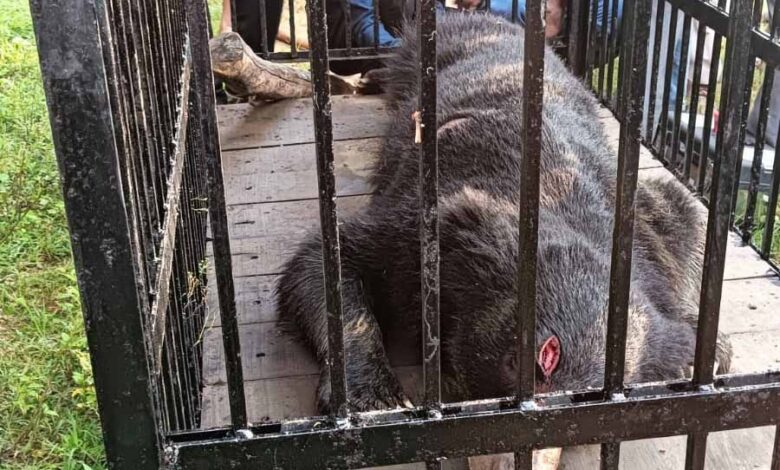 भालू के आक्रामक होने के कारण उच्चाधिकारियों ने रेस्क्यू करने के निर्देश दिए। रेस्क्यू दल ने कुछ घंटे की मशक्कत के बाद भालू को ट्रैंक्यूलाइजर गन से बेहोश कर दिया। बेहोश भालू के शरीर की जांच में चार जगहों पर टांगी से हमले के निशान मिले हैं।