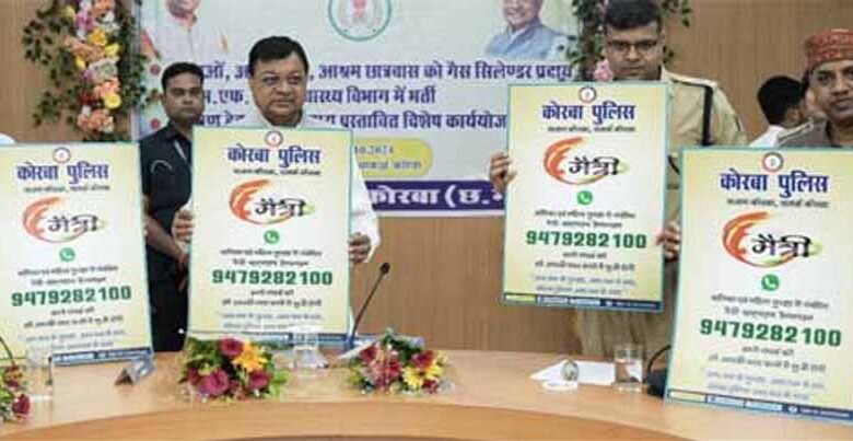 कोरबा पुलिस प्रशासन के द्वारा सजग कोरबा सतर्क कोरबा के तहत बालिका एवं महिला सुरक्षा से संबंधित मैत्री व्हाट्स ऐप हेल्पलाइन नंबर कलेक्टर अजीत वसंत की उपस्थिति में जारी किया गया है, जिसका शुभारंभ वाणिज्य एवं श्रम मंत्री लखन लाल देवांगन ने कल गांधी जयंती के अवसर पर कलेक्ट्रेट सभागार में किया। इस अवसर पर देवांगन ने कहा कि कोरबा पुलिस के द्वारा अपराध नियंत्रण एवं सुरक्षा हेतु कार्य किए जा रहे हैं। इसी कड़ी में महिलाओं के साथ होने वाली छेड़छाड़ की घटनाओं पर रोक लगाने के लिए मैत्री हेल्पलाइन नंबर +91-9479282100 जारी किया गया है। उन्होंने कहा कि यह हेल्पलाइन नंबर कानून व्यवस्था बनाए रखने के लिए तथा अपराधियों पर नियंत्रण के लिए महिलाओं के लिए लाभकारी साबित होगी।