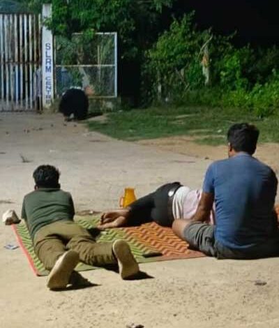 जंगली जानवरों के आतंक के बीच भालू को देखने के लिए रात को घरों से बाहर घूम रहें लोग