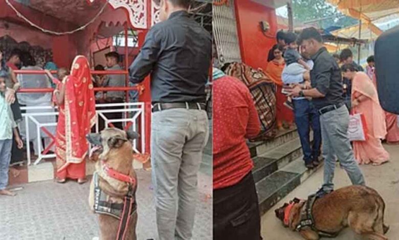 छत्तीसगढ़-कोरबा में ट्रैकर डॉग बाघा पहुंचा माता के दरबार, मत्था टेककर लिया मां से आशीर्वाद