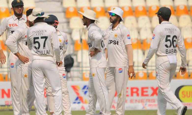 सैम अयूब, अब्दुल्लाह शफीक, शान मसूद (कप्तान), कामरान गुलाम, सऊद शकील (उपकप्तान), मोहम्मद रिजवान (विकेटकीपर), सलमान अली आगा, आमिर जमाल, नोमान अली, साजिद खान और जाहिद मेहमूद