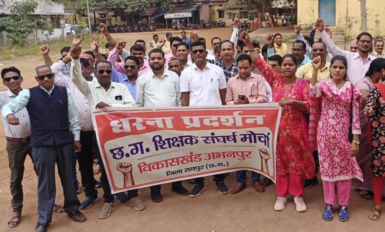 छत्तीसगढ़ शिक्षक संघर्ष मोर्चा के प्रांतीय आह्वान पर एल बी संवर्ग के शिक्षकों की पांच सूत्रीय मांग को लेकर जनपद कार्यलय के पास अभनपुर में ब्लॉक स्तरीयएक दिवसीय धरना देकर एवं रैली निकालकर सीईओ जनपद पंचायत राजेन्द्र पांडेय व बीईओ धनेश्वरी साहू के माध्यम से मुख्यमंत्री महोदय,शिक्षा मंत्री महोदय,वित्त मंत्री महोदय,मुख्य सचिव महोदय,वित्त सचिव,शिक्षा सचिव,डी पी आई के नाम ज्ञापन सौपा गया ।रायपुर जिले के प्राथमिक शाला के प्रधान पाठक व माध्यमिक शाला के प्रधान पाठक के पर पदोन्नति के लिए कलेक्टर, संयुक्त संचालक व डीईओ के नाम से भी सीईओ व बीईओ को ज्ञापन सौंपा गया। प्राथमिक शाला के प्रधान पाठक के पद पर दीपावली के पूर्व पदोन्नति नही होने पर डीईओ कार्यलय घेराव करने की चेतावनी भी दी गई।