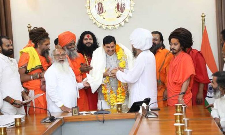 मुख्यमंत्री डॉ. मोहन यादव के धर्मनगरी उज्जैन में साधु संतों, महंत, अखाड़ा प्रमुखों, महामंडलेश्वर इत्यादि को स्थाई आश्रम बनाने की अनुमति दिए जाने के निर्णय से उज्जैन नगरी का वातावरण धर्ममय होगा। यह बात उज्जैन से पधारे अखाड़ा परिषद के संतजनों ने मुख्यमंत्री निवास समत्व भवन में मुख्यमंत्री डॉ. यादव का सम्मान करते हुए कही। मुख्यमंत्री डॉ. यादव का सभी संतों ने शॉल और फूलों की बड़ी माला पहनाकर अभिनंदन किया एवं आशीर्वाद दिया।