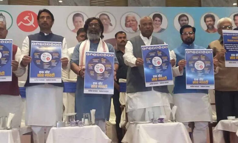 झारखंड विधानसभा चुनाव के लिए महागठबंधन ने संयुक्त रूप से अपना घोषणा पत्र किया जारी, जनता से किये 7 वादे