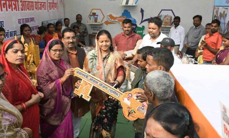 मंत्री श्रीमती राजवाड़े ने पहाड़ी कोरवा हितग्राहियों को सौंपी आवास की चाबी