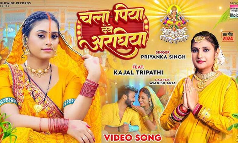 गायिका प्रियंका सिंह और अभिनेत्री काजल त्रिपाठी का छठ गीत 'चला पिया देवे अरघिया' रिलीज हो गया है। लोक आस्था का महापर्व छठ पूजा धूमधाम से श्रद्धा भक्ति के साथ मनाया जा रहा है।छठ गीत 'चला पिया देवे अरघिया' को वर्ल्डवाइड रिकॉर्ड्स भोजपुरी के ऑफिसियल यूट्यूब चैनल पर रिलीज किया गया है। इस गीत को प्रियंका सिंह ने भक्ति भाव में गाया है।