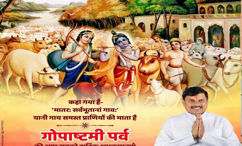 मुख्यमंत्री डॉ. मोहन यादव ने संस्कृति एवं अध्यात्म की प्रतीक गौमाता की आराधना के पावन पर्व गोपाष्टमी की मंगलकामना दी है। मुख्यमंत्री डॉ.यादव ने जगत का कल्याण करने वाली गौमाता से विश्वमांगल्य की प्रार्थना कर सभी के जीवन में सुख-समृद्धि एवं वैभव की कामना की है। मुख्यमंत्री डॉ. यादव ने कहा कि प्रदेश सरकार निरंतर गौमाता की सेवा एवं गौ-वंश के संरक्षण और संवर्धन के लिए कार्य कर रही है।