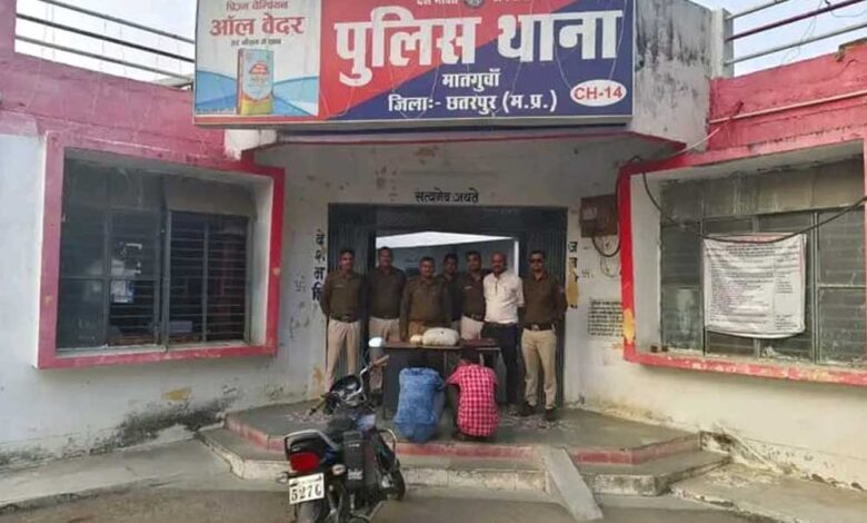 थाना मातगुंवा पुलिस को रात्रि रोड पेट्रोलिंग के दौरान मातगुंवा बिजावर रोड से अवैध मादक पदार्थ गांजा की तस्करी की सूचना प्राप्त हुई। थाना मातगुंवा पुलिस त्वरित कार्यवाही करते बिजावर मातगुंवा रोड ग्राम कूड़न के पास पहुंची, पुलिस टीम को देखकर संदेही ने मोटरसाइकिल लौटाने का प्रयास किया। संदेह के आधार पर रोककर चेक किया गया। बैग की तलाशी लेने पर अवैध मादक पदार्थ गांजा भरा मिला। अवैध मादक पदार्थ गांजा मात्रा करीब 4 किलोग्राम कीमत करीब 60 हज़ार रुपए एवं तस्करी में प्रयुक्त मोटरसाइकिल सहित कुल कीमत करीब 1 लाख 25 हज़ार रुपये जप्त कर दोनों आरोपी को अभिरक्षा में लिया गया।