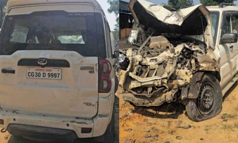 छत्तीसगढ़-गरियाबंद में SDM और नायब तहसीलदार बाल-बाल बचे, सड़क हादसे में वाहन के उड़े परखच्चे