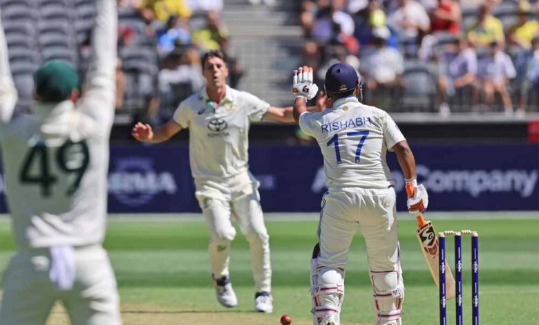 भारत और ऑस्ट्रेलिया के बीच पांच मैचों की टेस्ट सीरीज का आगाज हो चुका है। पहले दिन गेंदबाजों का बोलबाला रहा है। जोश हेजलवुड सहित अन्य गेंदबाजों के शानदार प्रदर्शन के दम पर ऑस्ट्रेलिया ने ऑप्टस स्टेडियम में पहले टेस्ट मैच में भारतीय पारी को 150 के स्कोर पर समेट दिया है। भारतीय बल्लेबाजों ने एक बार फिर निराश किया। भारत के लिए नीतीश रेड्डी और ऋषभ पंत ने सर्वाधिक रन बनाए। भारतीय पारी के दौरान ऑस्ट्रेलिया खिलाड़ी नाथन लियोन और मिचेल मार्श भारतीय बल्लेबाज ऋषभ पंत की टांग खींचते हुए दिखे।