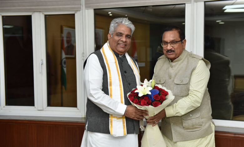 जनजातीय कार्य मंत्री डॉ. शाह ने केन्द्रीय पर्यावरण एवं वन मंत्री यादव से सौजन्य भेंट की