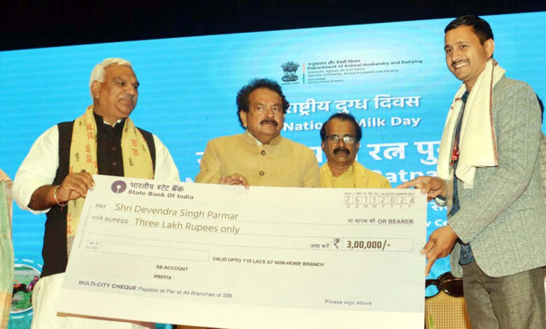 केंद्रीय पशुपालन मंत्री ने देवेन्द्र परमार को दिल्ली में प्रदान किया पुरस्कार