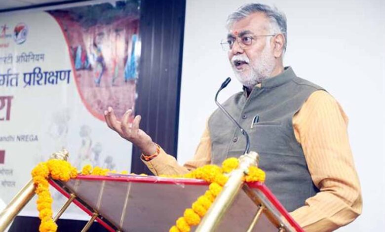 पंचायत एवं ग्रामीण विकास, श्रम मंत्री श्री प्रहलाद सिंह पटेल ने कहा कि केन्द्र सरकार द्वारा विकसित "युक्तधारा" पोर्टल ग्रामीण विकास के कार्यों को पूरा करने में मदद करेगा और कृषि विकास में बड़ी भूमिका निभाएगा। मंत्री श्री पटेल ने बुधवार को मध्यप्रदेश जल एवं भूमि प्रबंध संस्थान (वाल्मी) में मनरेगा अन्तर्गत "युक्तधारा पोर्टल" के दो दिवसीय क्षेत्रीय प्रशिक्षण का शुभारंभ कर संबोधित किया। इस अवसर पर प्रमुख सचिव श्रीमती दीपाली रस्तोगी, आयुक्त मनरेगा श्री अवि प्रसाद, संचालक वाल्मी श्रीमती सरिता बाला सहित विभागीय अधिकारी और आठ राज्यों से आए प्रतिभागी उपस्थित रहे।