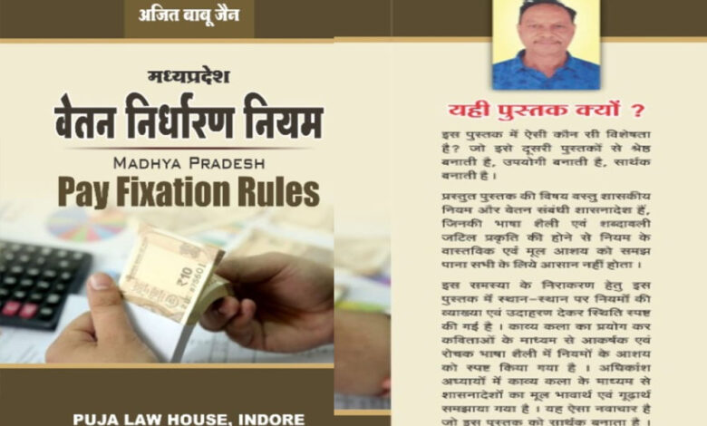 इसी गम्भीर मुद्दे पर डा अजित बाबू जैन की बहुचर्चित पुस्तक पूजा ला हाउस इन्दौर से प्रकाशित हुई हुई थी जिसका नाम है – मप्र वेतन निर्धारण नियम 2025 । इस पुस्तक का विमोचन कार्यक्रम दिनांक 4 दिसम्बर को भोपाल में आयोजित हुआ था। इस पुस्तक में वेतन निर्धारण की हर समस्या का समाधान मिल रहा है जिससे गलत वेतन निर्धारण होने की सम्भावना ही नहीं रह जाती है।