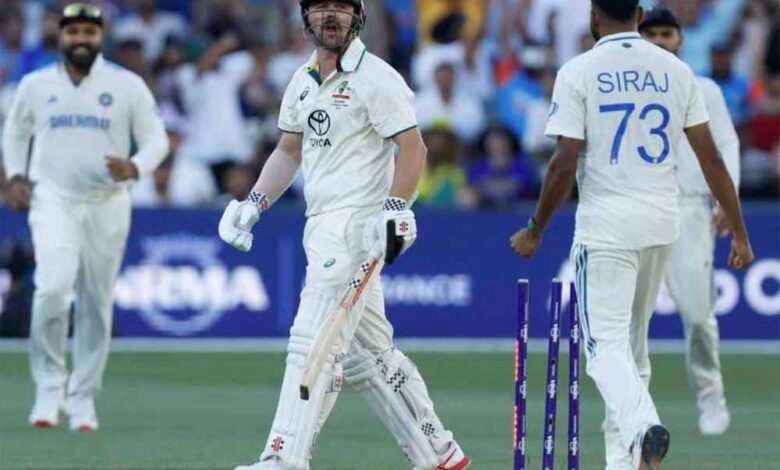 मोहम्मद सिराज लगातार अच्छी गेंदबाजी करते हुए नजर आ रहे हैं। उन्होंने खतरनाक बल्लेबाजी कर रहे ट्रैविस हेड को यॉर्कर पर क्लीन बोल्ड किया। हेड ने पिछले साल वनडे विश्व कप, वर्ल्ड टेस्ट चैंपियनशिप फाइनल और अब पिंक बॉल टेस्ट में दमदार प्रदर्शन करके दिखाया है। उन्हें भारतीय टीम काफी पसंद आ गई है और टीम के खिलाफ वह लगातार रन बटोर रहे हैं। सिराज ने उन्हें आउट करने के बाद काफी आक्रमक जश्न मनाया और हेड के करीब पहुंच गए थे, जिसे देखकर हेड नाखुश थे और दोनों के बीच नोकझोंक हुई।