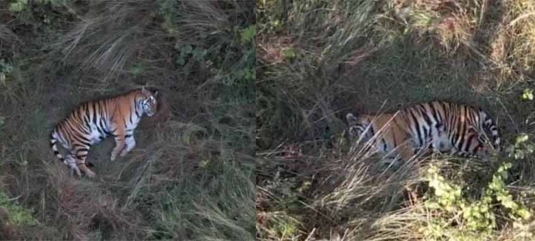 मरवाही के जंगल में बीते दो दिनों से गूंज रही मादा बाघ की दहाड़, आराम फरमाते ड्रोन कैमरे में कैद हुई तस्वीर
