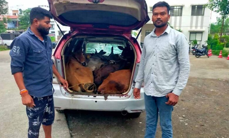औबेदुल्लागंज टोल नाके पर बजरंग दल और विश्व हिंदू परिषद के कार्यकर्ताओं ने अवैध रूप से गौमांस की तस्करी पकड़ी