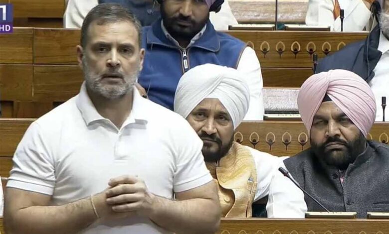 राहुल गांधी लोकसभा में मनुस्मृति लेकर पहुंचे, सावरकर पर भी दागे सवाल, युवाओं का अंगूठा काट रही सरकार
