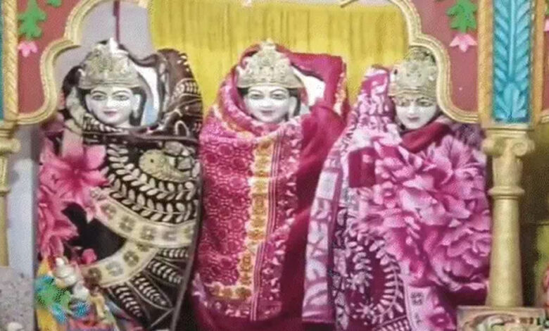 भोपाल के मां वैष्णो धाम आदर्श नवदुर्गा मंदिर में भगवान को ठंड से बचाने के लिए कंबल ओढ़ाए