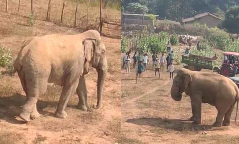 छत्तीसगढ़-कोरबा में घायल जंगली हाथी गांव में घुसा, सैकड़ों ग्रामीण पहुंचे भगाने
