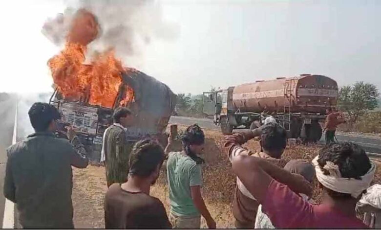 गुना में बड़ा हादसा टला, चलते ट्रक में अचानक लगी आग