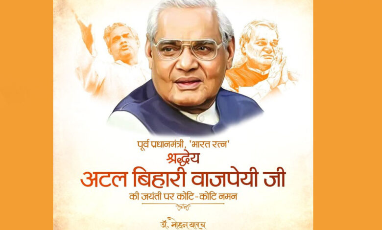 मुख्यमंत्री डॉ. मोहन यादव ने पूर्व प्रधानमंत्री भारत रत्न स्व. अटल बिहारी वाजपेयी की 100वीं जयंती पर उन्हें नमन किया है। मुख्यमंत्री डॉ. यादव ने कहा कि पूर्व प्रधानमंत्री स्व. वाजपेयीका जीवन सदैव राष्ट्र निर्माण के लिए समर्पित रहा। पूर्ण निष्ठा और पवित्रता के साथ देश सेवा और जनसेवा के जो आयाम उन्होंने स्थापित किए, वे अमृतकाल में विकसित भारत के संकल्प को साकार करने के लिए सभी को प्रेरित करते रहेंगे।