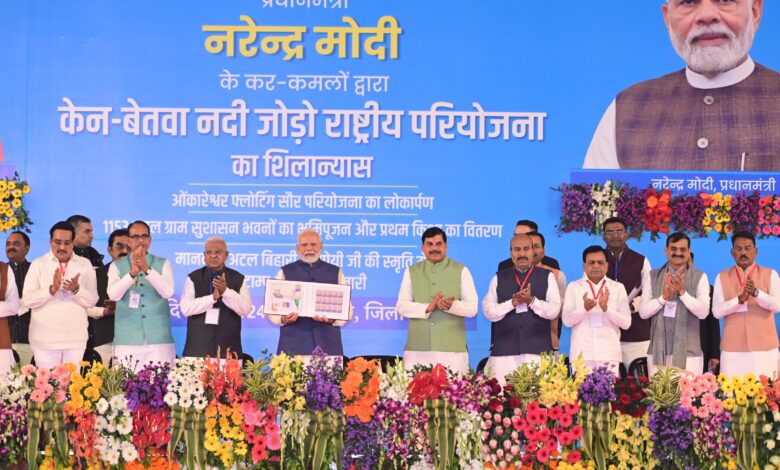 प्रधानमंत्री नरेन्द्र मोदी ने खजुराहो में केन-बेतवा लिंक परियोजना का किया शिलान्यास, अटल जी के नाम का डाक टिकट तथा सिक्का जारी