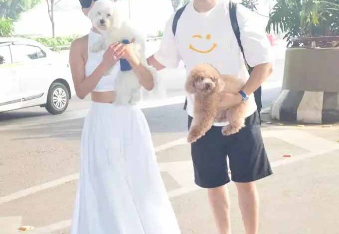 आलिया-रणबीर और राहा के बाद अब एयरपोर्य से मौनी रॉय और उनके हसबैंड सूरज नांबियार की कई सारी तस्वीरें सामने आई हैं जिनमें दोनों की गोद में उनका Pet डॉग दिख रहा है।