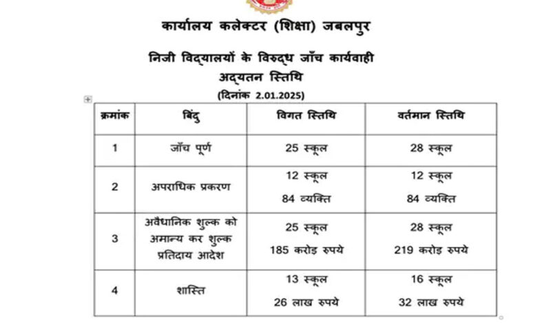 जबलपुर के तीन और स्कूलों पर जांच पूरी होने के बाद बड़ा एक्शन, लौटाना होगी बढ़ाई फीस