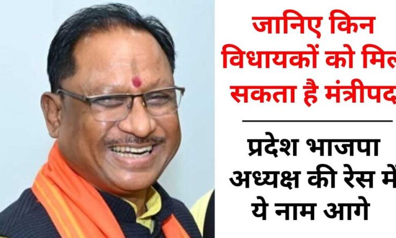 रायपुर में कई दावेदार: रायपुर में पूर्व मंत्री राजेश मूणत, पूर्व मंत्री अजय चंद्राकर, विधायक सुनील सोनी, विधायक पुरंदर मिश्रा और विधायक गुरु खुशवंत साहेब का नाम भी मंत्री पद के लिए चर्चा में है।