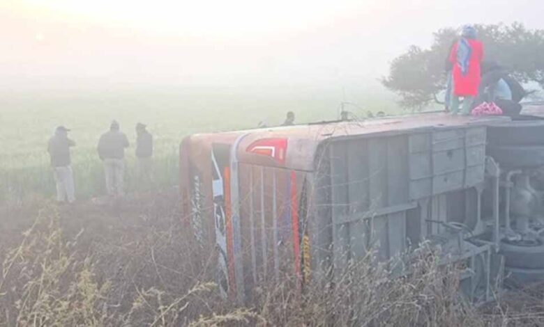 गणेशपुरा जोड़ गांव के पास सड़क हादसा: खाटू श्याम से इंदौर जा रही बस सुसनेर में पलटी, 17 यात्री हुए घायल