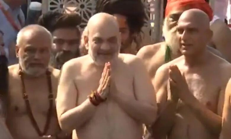 गृहमंत्री शाह ने सीएम योगी, बाबा रामदेव और साधु-संतों के साथ महाकुंभ में लगाई डुबकी