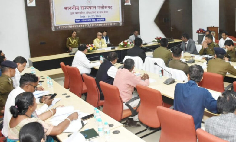 बैठक में राज्यपाल ने जगदलपुर जिले में टीबी उन्मूलन की गतिविधियों और रोगियों को फूड बास्केट से सेहत में सुधार की कार्य योजना बनाने, जिले में वृद्धाश्रम, दिव्यांग बच्चों के लिए संचालित केंद्रों की स्थिति, जल संरक्षण, रेडक्रास सोसायटी की गतिविधि, नशा मुक्ति अभियान, योग के माध्यम से स्वास्थ्य सेवाओं, शाला त्यागी बच्चों को पुनः शिक्षा से जोड़ने की पहल, जैविक खेती को प्रोत्साहित करने तथा जिला प्रशासन की कचरा प्रबंधन की गतिविधियों का संज्ञान लिया और आवश्यक निर्देश दिए। इस अवसर राज्यपाल के सचिव सी आर प्रसन्ना, कमिश्नर डोमन सिंह, आईजी सुंदरराज पी., डीआईजी कांकेर अमित काम्बले,कलेक्टर हरिस एस, पुलिस अधीक्षक शलभ सिंहा, सहित अन्य अधिकारी उपस्थित रहे ।