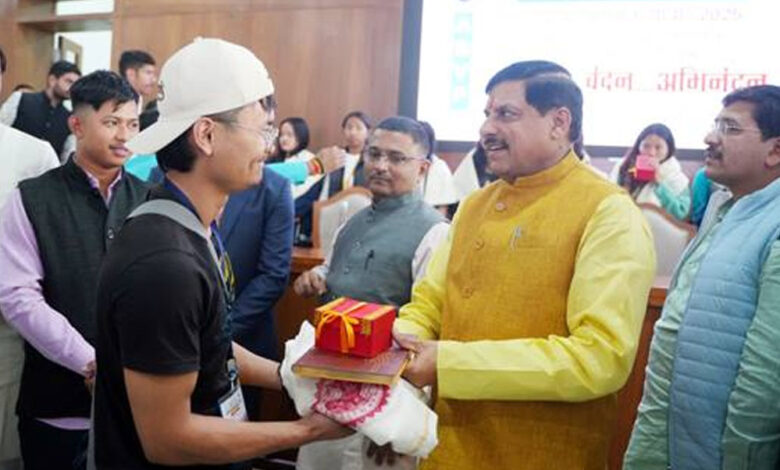 मुख्यमंत्री डॉ. मोहन यादव ने पूर्वोत्तर राज्यों से भारत एकात्मता यात्रा पर आए विद्यार्थियों को संबोधित करते हुए कहा कि मध्यप्रदेश केवल भौगोलिक दृष्टि से ही नहीं, बल्कि सांस्कृतिक रूप से भी देश की एकता और अखंडता को दर्शाता है। उन्होंने प्रदेश की सांस्कृतिक विरासत और राष्ट्रप्रेम की भावना को रेखांकित करते हुए विद्यार्थियों को इस विविधता का सम्मान करने और भारतीय संस्कृति को आत्मसात करने की प्रेरणा दी। उन्होंने कहा कि मध्यप्रदेश की संस्कृति अपनी अनूठी विविधता और समृद्ध परंपराओं के लिए प्रसिद्ध है। यहां विभिन्न प्रांतों, वर्गों और भाषाओं के लोग सौहार्दपूर्वक निवास करते हैं। मध्यप्रदेश, देश के उस गौरवशाली इतिहास और संस्कृति का संवाहक है, जो देशभक्ति, राष्ट्र रक्षा और सम्मान के मूल्यों को संजोकर रखता है।