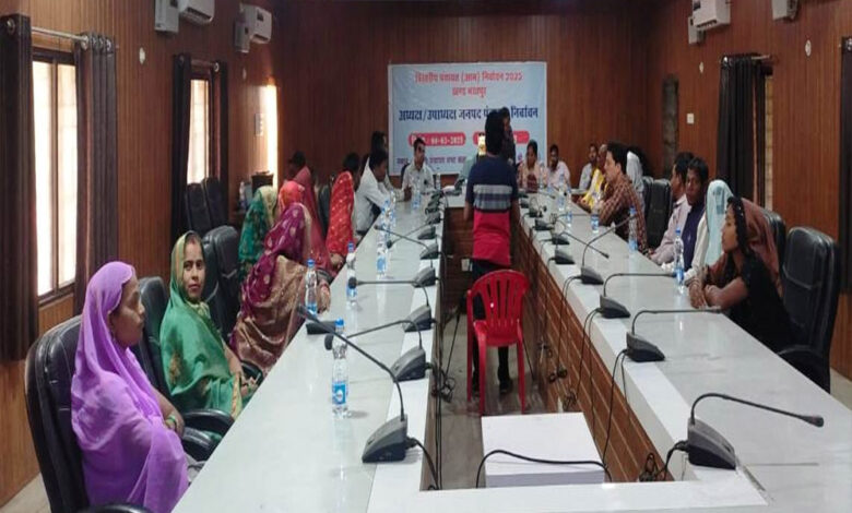 कार्यालय कलेक्टर एवं जिला दण्डाधिकारी जिला के आदेशानुसार प्रवीण कुमार भगत अनुविभागीय अधिकारी (राजस्व) अनुभाग भरतपुर ने आज समय पूर्वान्ह 12:00 बजे जनपद पंचायत भरतपुर के अध्यक्ष एवं उपाध्यक्ष निर्वाचन हेतु नवनिर्वाचित जनपद सदस्यों की बैठक आहुत कर विशेष सम्मिलन की अध्यक्षता, पीठासीन अधिकारी के रूप में किये जाने हेतु सम्मिलन स्थल जनपद पंचायत भरतपुर के सभाकक्ष में उपस्थित रहे। इस सम्मिलन में जनपद पंचायत के कुल-18 निर्वाचित जनपद पंचायत सदस्यों में से 18 जनपद पंचायत सदस्य सम्मिलन में उपस्थित हुए तत्पश्चात् अनुविभागीय अधिकारी ने प्रवीण कुमार भगत द्वारा जनपद पंचायत के अध्यक्ष एवं उपाध्यक्ष के निर्वाचन कार्यक्रम को तैयार कर तथा सम्मिलन में घोषणा छत्तीसगढ पंचायत (उपसरपंच, अध्यक्ष एवं उपाध्यक्ष निर्वाचन नियम 1995 के नियम 13 (3) के तहत अध्यक्ष एवं उपाध्यक्ष के निर्वाचन का कार्यक्रम पृथक-पृथक तैयार किया, जिसे सम्मिलन में घोषित किया गया तथा एक प्रति सम्मिलन की सूचना पटल पर चस्पा कराकर प्रदर्षित किया गया। जिसमें जनपद पंचायत भरतपुर के अध्यक्ष पद हेतु अभ्यर्थी माया प्रताप सिंह/समरबहादुर, श्रीमती राजकली बैगा/ज्ञानप्रकाश बैगा, रविन्द कुमार बैगा/रामसाय बैगा, लालसाय बैगा/दशरू बैगा द्वारा नामनिर्देशन पत्र प्राप्त हुए एवं सभी नामनिर्देशन पत्र विधिमान्य पाये गये तत्पश्चात् मतदान की प्रक्रिया प्रारंभ की गई। मतदान समप्ति के पश्चात् मतगणना प्रारंभ हुई जिसमें माया प्रताप सिंह/समरबहादुर,(कुल मत-7) श्रीमती राजकली बैगा/ज्ञानप्रकाष बैगा, ,(कुल मत-1) रविन्द कुमार बैगा/रामसाय बैगा, ,(कुल मत-4) लालसाय बैगा/ दशरू ,(कुल मत-6) प्राप्त हुए जिसमें माया प्रताप सिंह को सर्वाधिक मत प्राप्त हुआ और सम्यक रूप अध्यक्ष निर्वाचित घोषित किये गये। इसी प्रकार जनपद पंचायत भरतपुर के उपाध्यक्ष पद के निर्वाचन हेतु तीन(1, हीरालाल मौर्य, 2, अर्पिता सिंह, 3, नन्दिनी गुप्ता) के नामनिर्देशन पत्र प्राप्त हुए एवं सभी नामनिर्देशन पत्र विधिमान्य पाये गये तत्पश्चात् मतदान की प्रक्रिया प्रारंभ की गई। मतदान समप्ति के पश्चात् मतगणना प्रारंभ हुई जिसमे (हीरालाल मौर्य,-7 मत , अर्पिता सिंह-05 मत , नन्दिनी गुप्ता-04 मत एवं अविधिमान्य 02 मत प्राप्त हुए) जिसमें सर्वाधित मत हीरालाल मौर्य को प्राप्त हुआ और सम्यक रूप से उपाध्यक्ष निर्वाचित घोषित किए गये। निर्वाचित अध्यक्ष एवं उपाध्यक्ष को अनुविभागीय अधिकारी प्रवीण कुमार भगत द्वारा प्ररूप-छः में प्रमाण पत्र परिदत्त किया गया। तत्पश्चात् निर्वाचन की कार्यवाही पूर्ण कर निर्वाचन की कार्यवाही समाप्त की गई।