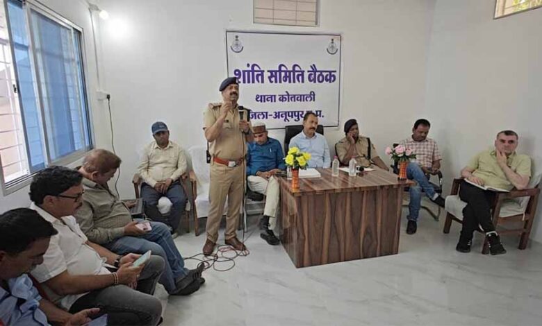 थाना कोतवाली अनूपपुर में शान्ति समिति बैठक का आयोजन